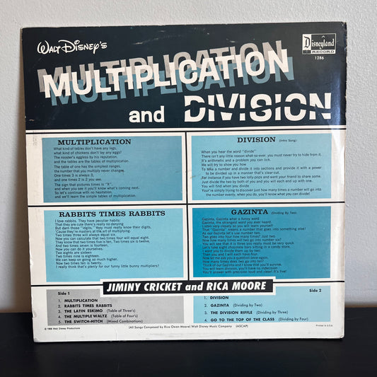 Multiplication and Division - Jimmy Cricket and Rica Moore Used Vinyl 1963 Disneyland Record 1286 VG+
